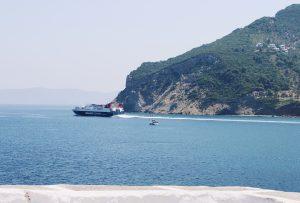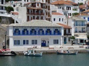 Abgesehen von Skopelos Stadt sollte auch das kleinere Dorf Glossa auf dem Programm stehen. Es liegt auf halber Höhe über der Siedlung Loutraki am Meer. Du musst dein Fahrzeug abstellen, da im Dorf keine Autos erlaubt sind. Betrachte den Baustil der Häuser mit Balkonen und die nett dekorierten Fassaden. Vom Dorfplatz hast du einen herrlichen Blick über das Meer und du siehst in der Ferne die Nachbarinseln. Im Norden liegt die Hafenstadt Thessaloniki und rechts davon die Halbinsel Chalkidiki mit den drei Ausläufern. Wenn dich diese Ecke interessiert, kannst du den hier verlinkten Beitrag lesen. In den Lokalen werden Spezialitäten der Gegend serviert und der Wein darf nicht fehlen. Schon wartet die nächste Fähre im Hafen von Skopelos auf dich und bringt dich zum letzten Punkt deiner Reise, bevor es nach Volos zurückgeht.