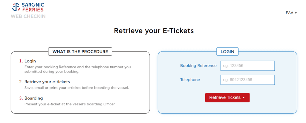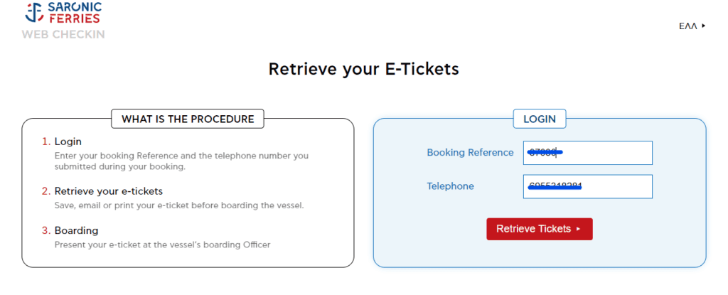 Um den Web Check-in für Saronic Ferries abzuschließen, folgen Sie bitte den nachstehenden Schritten. Bitte beachten Sie, dass der Check-in 48 Stunden vor Ihrer Reise und bis zu 2 Stunden vor der Abfahrtszeit Ihrer Fähre möglich ist.