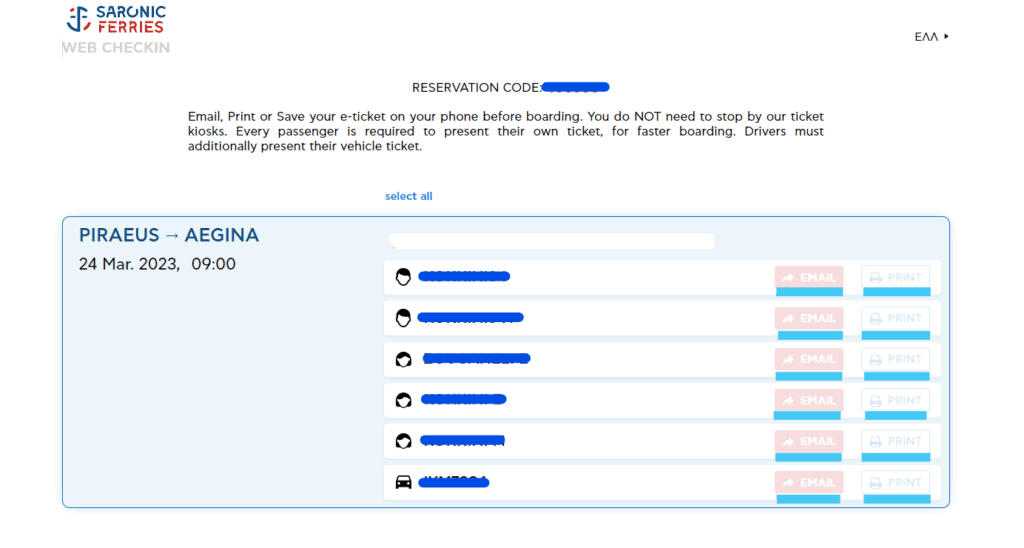 Sie werden dann zu dieser Check-in-Seite auf der Website von Saronic Ferries weitergeleitet.