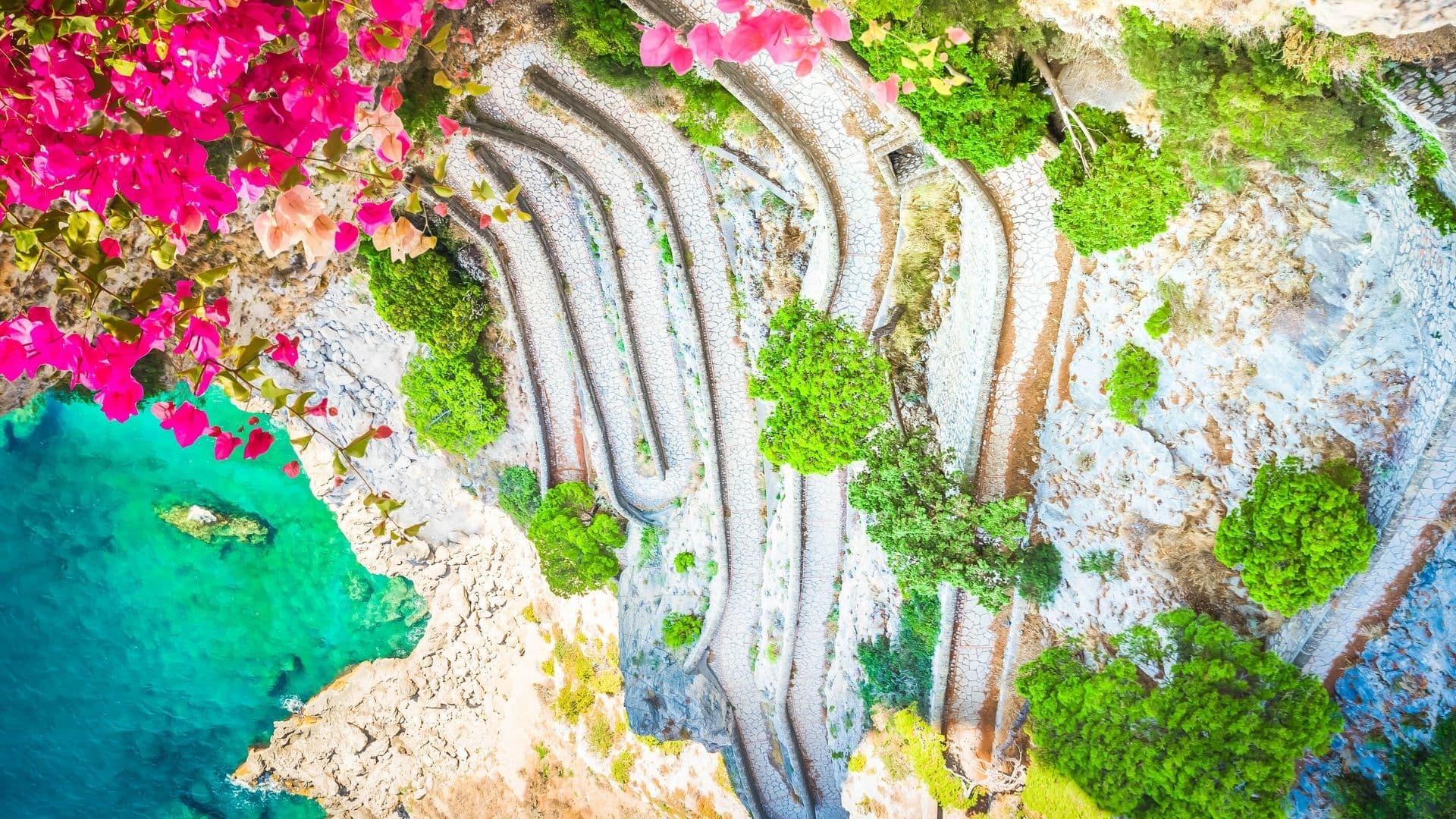 Die Gärten des Augustus sind eine terrassenförmige Anlage, die besonders die Vielfalt der Flora der Insel hervorhebt. Der botanische Garten wurde in den 1930er Jahren von Friedrich Krupp gebaut und von diesem Blickwinkel kannst du über die ganze Insel, zum blauen Meer und bis nach Faraglioni schauen. Von La Piazzetta bis zum Park sind es 15 Minuten zu Fuß. Neben den Pflanzen solltest du auch den Krupp-Weg fotografieren, der im Zickzack den Berg hinunterführt. Der Weg ist jetzt wegen der herabfallenden Steine leider gesperrt.