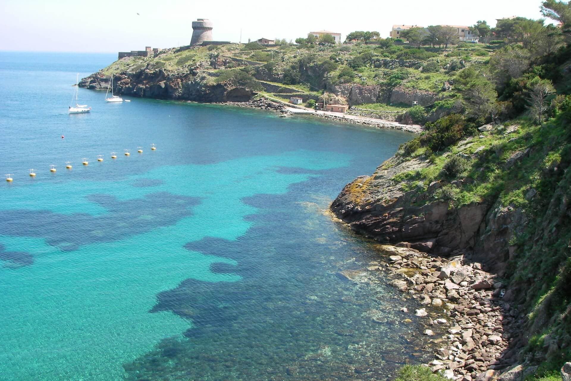 Punta della Teglia ist zwar kein klassisches Strandziel, aber die Mühe, die man auf sich nimmt, um es zu erreichen, lohnt sich. Am nördlichsten Punkt der Insel bilden die Felsen hier eine dramatische Kulisse für eine lebhafte Möwenkolonie. Ein Fußweg schlängelt sich über die sanften Hügel zum Torre delle Barbici, einem Wachturm aus dem späten 16. Jahrhundert.