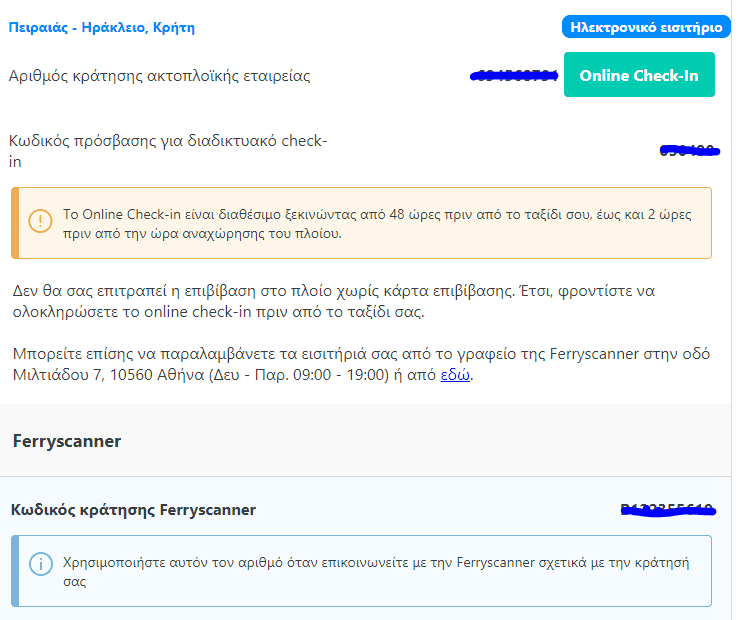 Ανοίξτε το email επιβεβαίωσης της κράτησης που λάβατε από τη Ferryscanner και πατήστε το κουμπί που γράφει online Check-in.