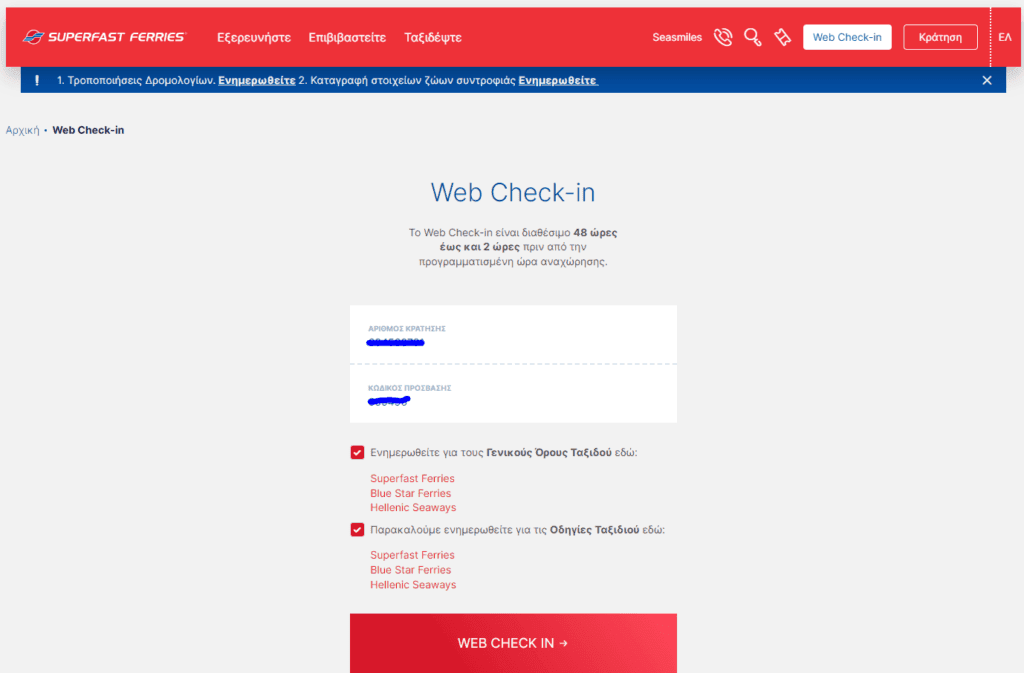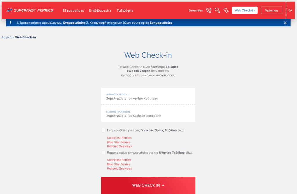 Μόλις το πατήσετε, θα μεταφερθείτε στην παρακάτω σελίδα check-in της ANEK Lines.