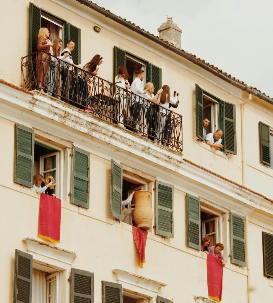 Κερκυραίοι πετούν τεράστια κανάτια γεμάτα νερό – τους μπότηδες – από τα μπαλκόνια τους, τηρώντας το εντυπωσιακό πασχαλινό έθιμο που συμβολίζει την ανανέωση και την ελπίδα. Πηγή: Pexels