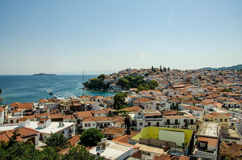 Η μαγευτική Χώρα της Σκιάθου, με τα κεραμιδένια της σπίτια και το απέραντο γαλάζιο του Αιγαίου να την αγκαλιάζει. Πηγή: Pexels