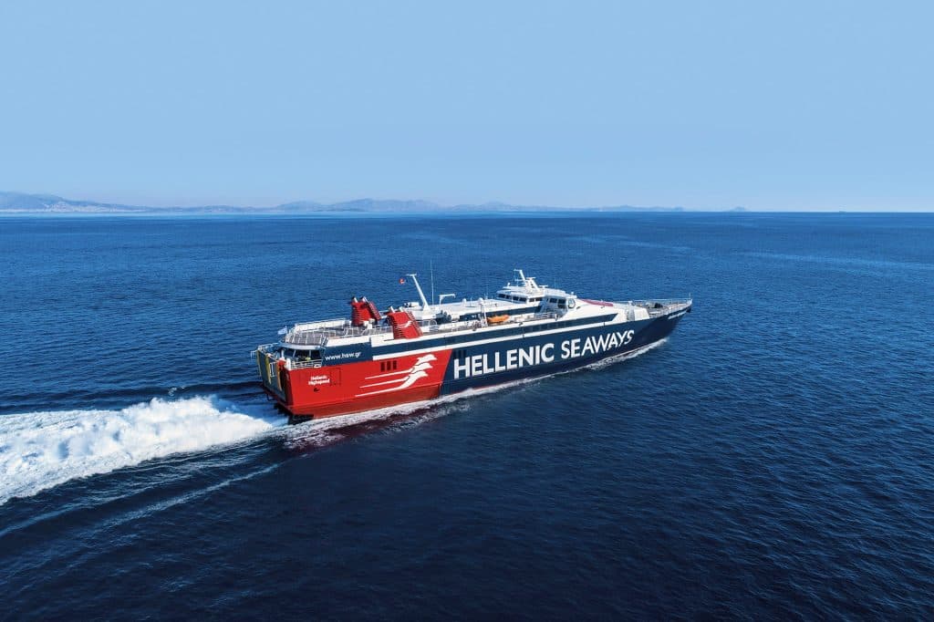 Το ταχύπλοο Hellenic Highspeed της Hellenic Seaways εν πλω στο Αιγαίο – για άνετα και γρήγορα ταξίδια από Πειραιά και Ηράκλειο προς Κυκλάδες. Πηγή: Blue Star Ferries