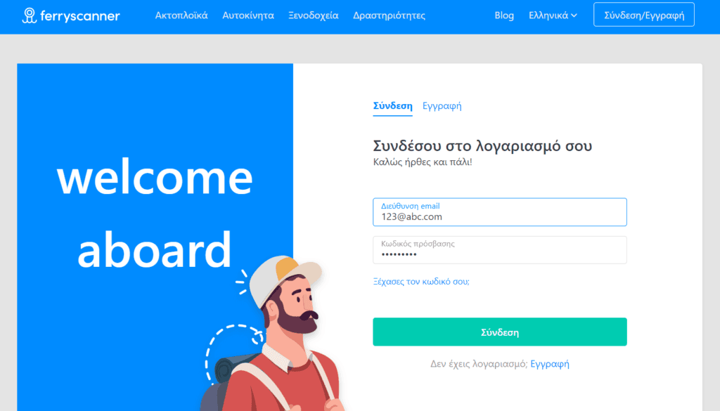 Η εγγραφή απαιτεί μόνο μερικά απλά βήματα. Μόλις ολοκληρώσεις το προφίλ σου και συμπληρώσεις τα δεδομένα σου, είσαι έτοιμος! Την επόμενη φορά που θα θέλεις να βρεις ακτοπλοϊκά εισιτήρια, συνδέσου στον λογαριασμό χρήστη σου για μια μοναδική εμπειρία. Θα είναι μια διαδικασία πιο γρήγορη και πολύ λιγότερο αγχωτική.