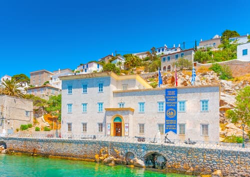 Many of the houses that once belonged to ships’ captains have transformed into museums in Hydra. Visit the Lazaros Koundouriotis mansion with its marble carved-relief wellhead, massive ovens in the basement and coffered wood ceilings. The upstairs area has an ethnographic section filled with costumes, jewellery, belts, buckles and pottery. There are also plenty of paintings from Periklis Byzantios (the first director of the nearby Fine Arts School), and you can purchase postcodes and prints of his work at the gift shop.