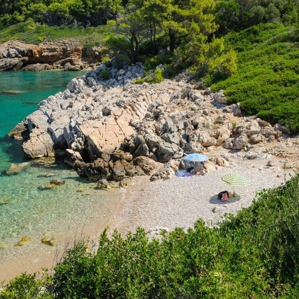 Also, the island’s national marine park is the largest in Europe, It is home to the Mediterranean monk seal Monachus Monachus. You can go from Patitiri and spend the day. The excellently marked paths for walkers are visibly marked. Finally, most of the island’s beaches are pebbled with turquoise waters. The most popular ones are Agios Dimitrios, Milia, and Kokkinokastro.