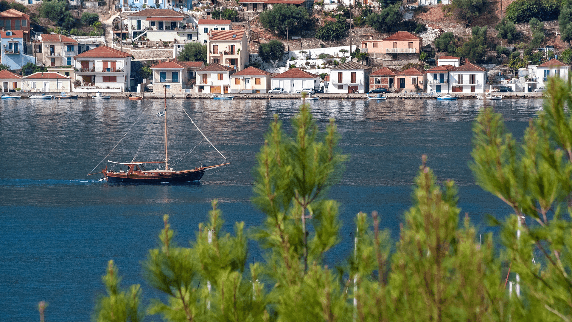 A short distance from Frikes, also on the north-eastern coast, is the village of Kioni. Consisting of a lively harbor and light-colored houses scattered across the hills, Kioni is well-known for its beach and three traditional windmills.