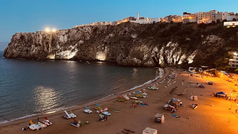 Una impresionante vista nocturna de la playa de Alhucemas, el destino perfecto para una escapada relajante. Fuente: iStock