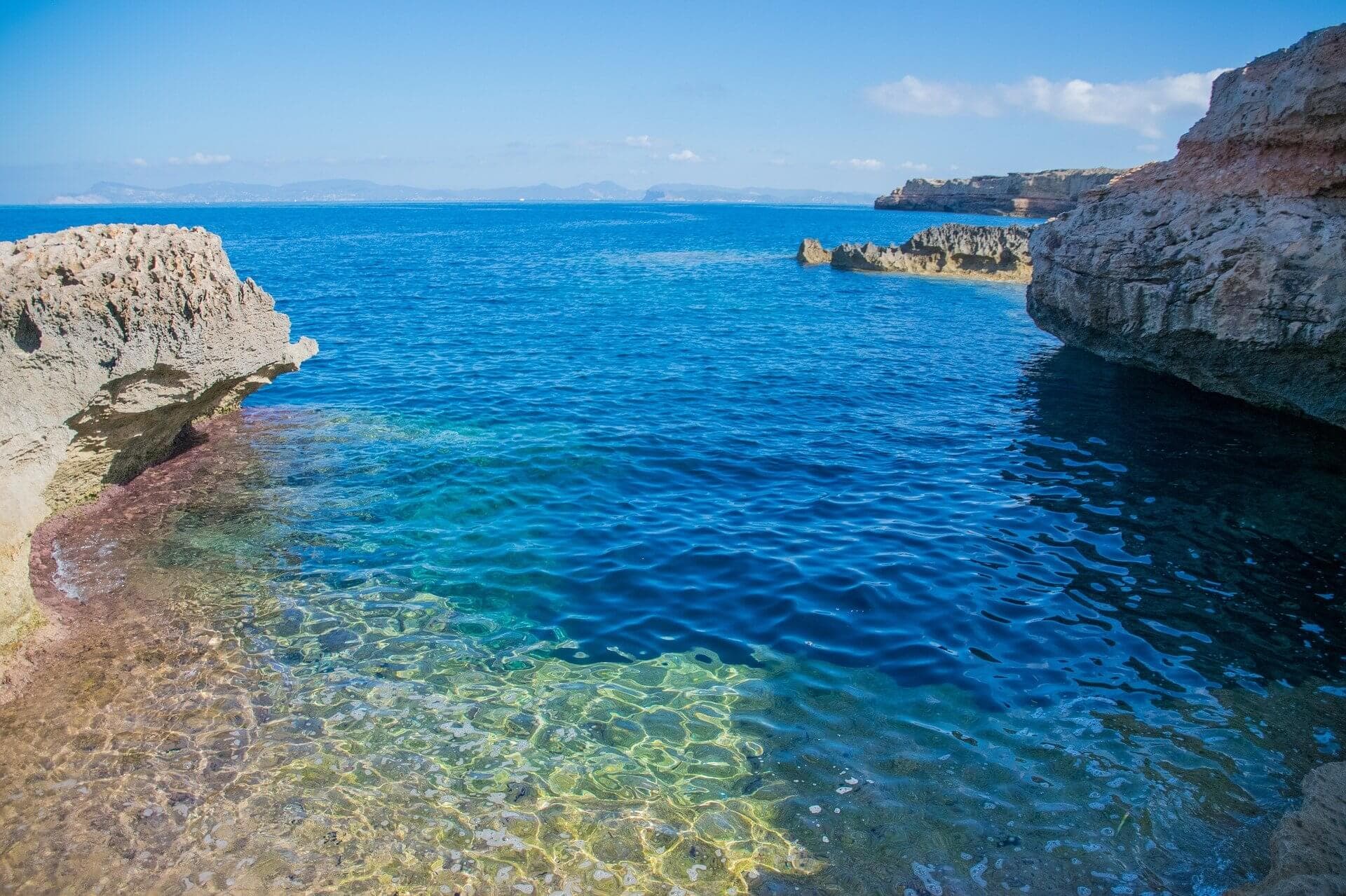 Sa Caleta o Es Bol Nou está a apenas 4 km del Aeropuerto de Ibiza. Solo tiene 80 m de extensión, pero merece la pena visitarla por las paredes de arena rojiza que la custodian. Además, junto a ella, se encuentran las ruinas del primer asentamiento fenicio de Ibiza, que data del s. VIII a.C.