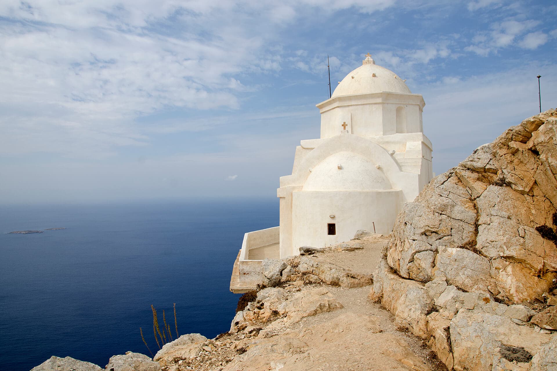 El Monasterio de Zoodochos Pigi, o Panagia Kalamiotissa como también se lo conoce, fue construido en la cima de una colina y sus vistas incomparables lo convierten en un destino popular para dar caminatas. En tu caminata de 2 horas ahí también te dará la oportunidad de ver una gran parte de la isla y en la misma área, descubrirás muchos restos del antiguo templo de Apollo Aeglitis o Apollo Anafeos.