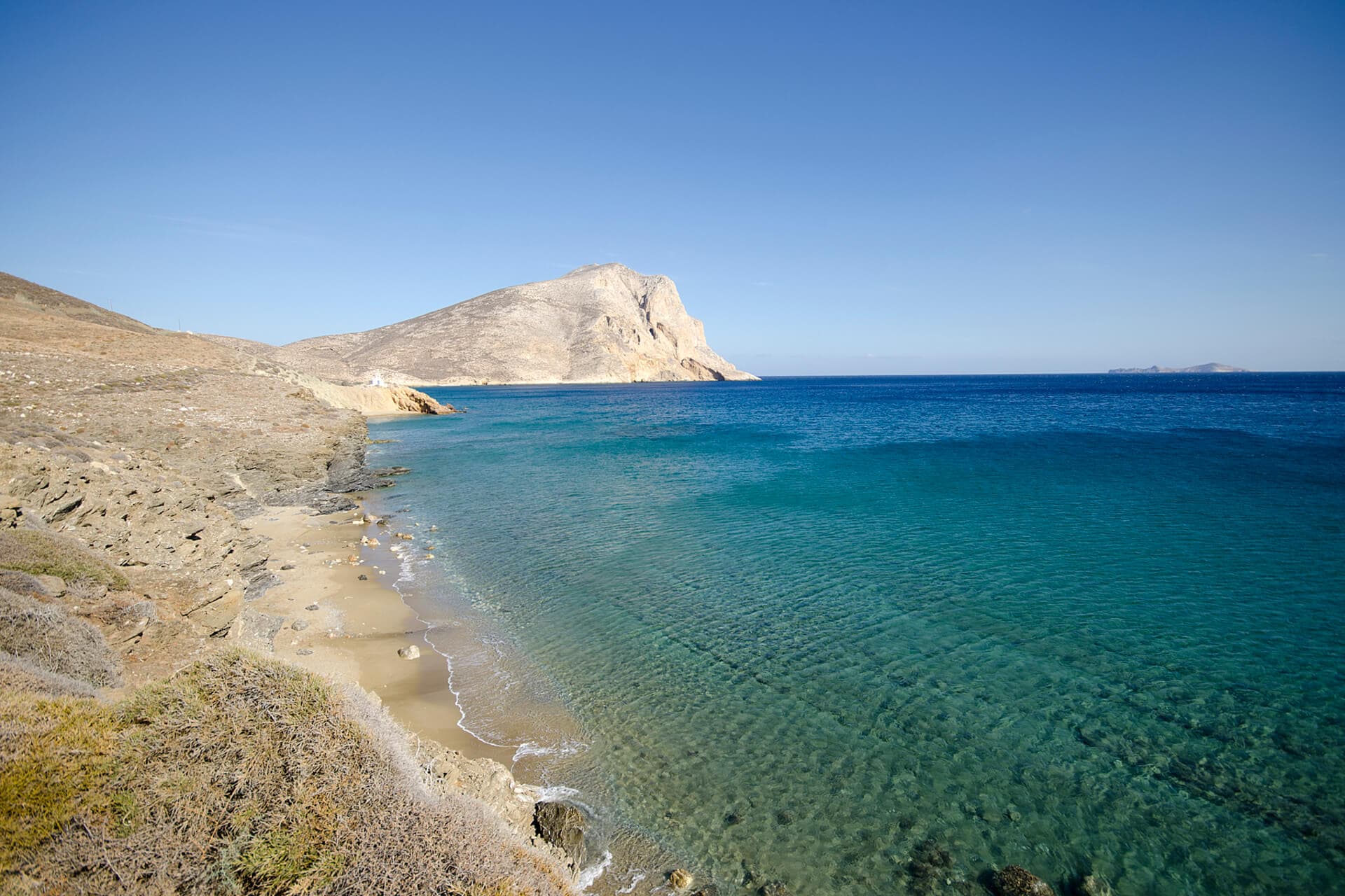 Agios Nikolaos puedes encontrarla en el puerto de Anafi en el lado sur de la isla. Es pequeña y arenosa, con una cafetería y algunas tabernas cerca, así como un par de habitaciones para alquilar. Puede estar muy concurrida en temporada alta, ya que es una de las pocas playas de arena de la isla, pero aún así vale la pena visitarla.