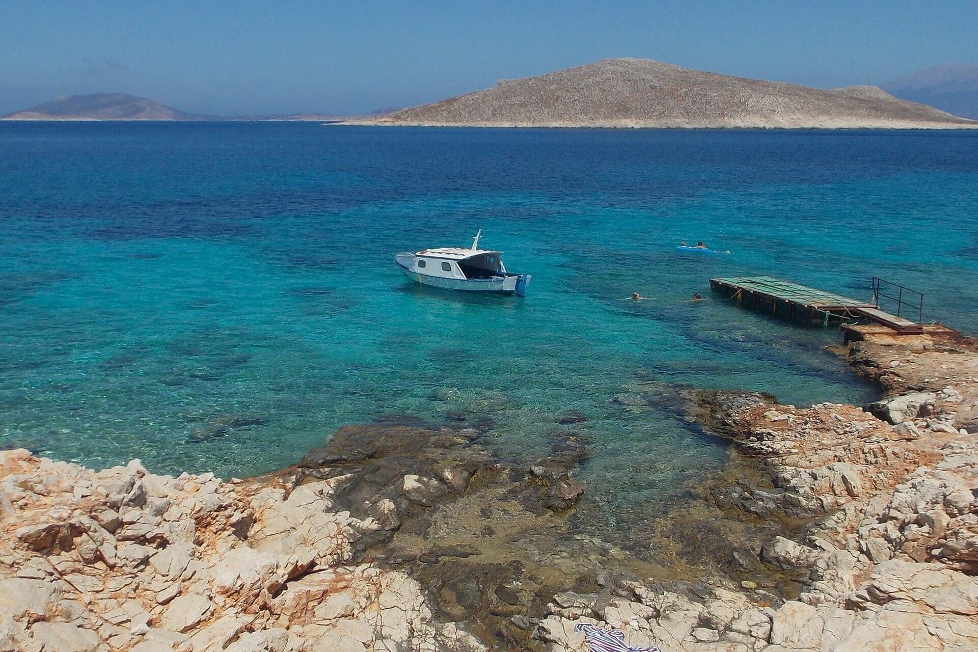 Pikkuruiselle saarelle pääsee yhdellä perinteisistä veneistä, ja se on varmasti kiehtova paikka, jossa kannattaa vierailla. Nykyään asumaton, mutta näet raunioituneita taloja, jotka hylättiin vuoden 1940 jälkeen. Saaren luoteispuolella on pieni suolaisen veden järvi, joka on osa Natura 2000 -hanketta. Kävelykierroksen jälkeen voit pulahtaa saaren kristallinkirkkaisiin vesiin ja nähdä, löydätkö Alimnian poukamassa uponneen toisen maailmansodan aikaisen saksalaisen vesiskootterin.