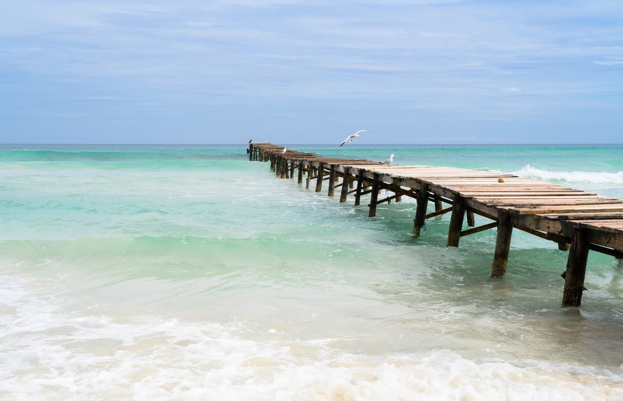Promenez-vous le long de la plage et aventurez-vous sur les pontons de bois de la playa de Muro. Source : iStock.