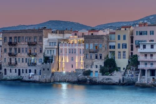 La capitale de l’île, Ermoupolis, située au sommet d’une colline, est bien sûr la ville la plus frappante de l’île. Ermoupoli possède de belles demeures néoclassiques, des rues en marbre, un hôtel de ville du XIXe siècle et le cinéma Pallas. C’est donc là que vous trouverez des maisons d’hôtes et des hôtels de charme vraiment uniques à Syros. Cependant, quel que soit l’endroit où vous résidez, Syros dégage une ambiance décontractée et sans foule, même pendant la haute saison touristique.