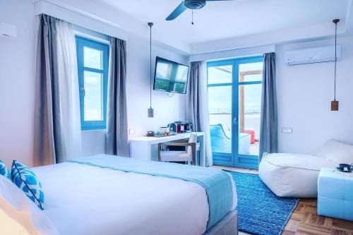 Les chambres de l’hôtel Shapes Luxury Suites sont dotées de parquet et d’un mobilier confortable dans des tons de couleurs douces qui rendent les intérieurs clairs et lumineux. Parmi les équipements, on trouve des balcons privés avec vue sur la mer, des mini-piscines, Netflix, des cafetières, une réception ouverte 12 heures sur 24, la climatisation et des haut-parleurs Bluetooth. Vous trouverez également des articles de toilette de marque artisanale locale, des parasols, des serviettes et des sacs de plage. En outre, l’établissement met à la disposition des clients des appareils photo étanches Nikon qu’ils pourront utiliser pendant leur séjour.