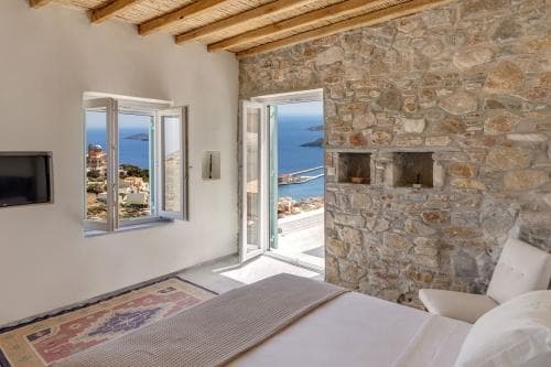 Perché à flanc de falaise dans le village traditionnel d’Ano Syros, datant du XIIe siècle, Wind Tales est une magnifique maison d’hôtes de quatre chambres. L’hôtel offre des vues spectaculaires sur la capitale et la mer Égée. Par temps clair, on peut même voir jusqu’à Tinos et Paros.