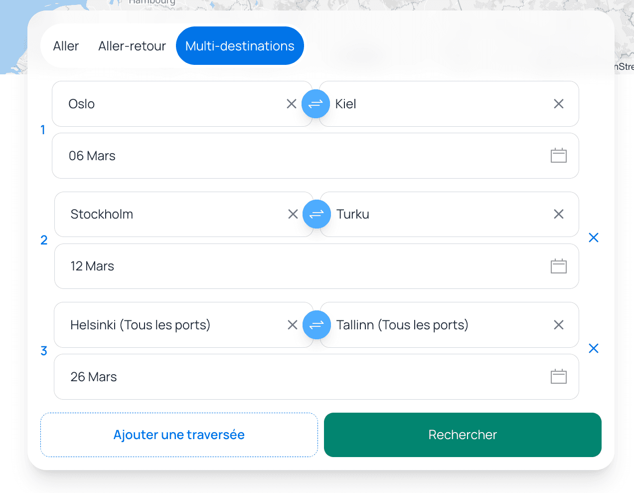L’année 2026 s’annonce chargée en voyage ? La fonction Multi-destinations vous aide à centraliser vos traversées, même si elles ont lieu à des périodes différentes et dans plusieurs pays.