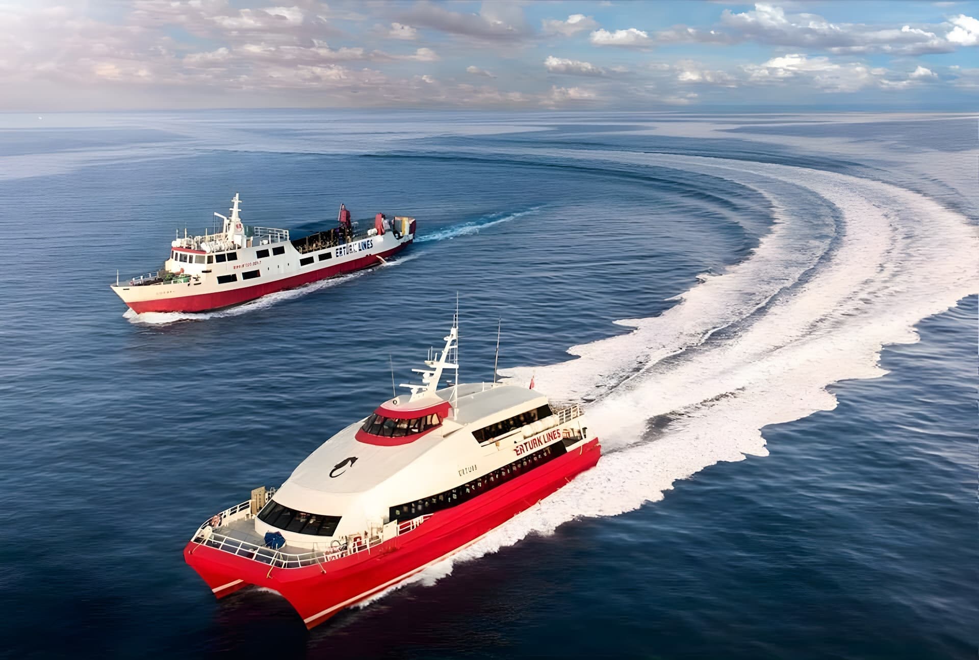 Erturk Lines upravlja flotom dizajniranom za udobnost i brzinu, čime osigurava nesmetano iskustvo putovanja preko Egejskog mora. Bilo da putuješ na trajektu Cesme 1, konvencionalnom brodu s kapacitetom od 190 putnika i 20 vozila, ili na brzom plovilu Erturk 1, koje prima 300 putnika, možeš očekivati sigurno i učinkovito putovanje. Svako plovilo redovito se održava i ispunjava visoke sigurnosne standarde, uz udobnosti koje omogućuju opušteno putovanje.