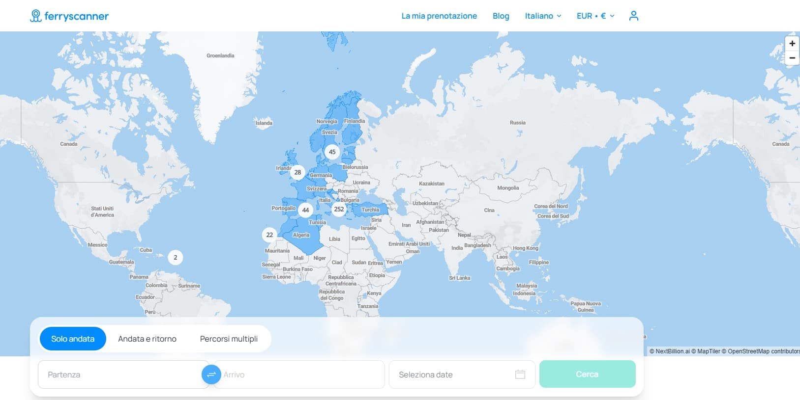 - Piattaforma completa: confronti facilmente rotte e operatori di traghetti in un unico sito.