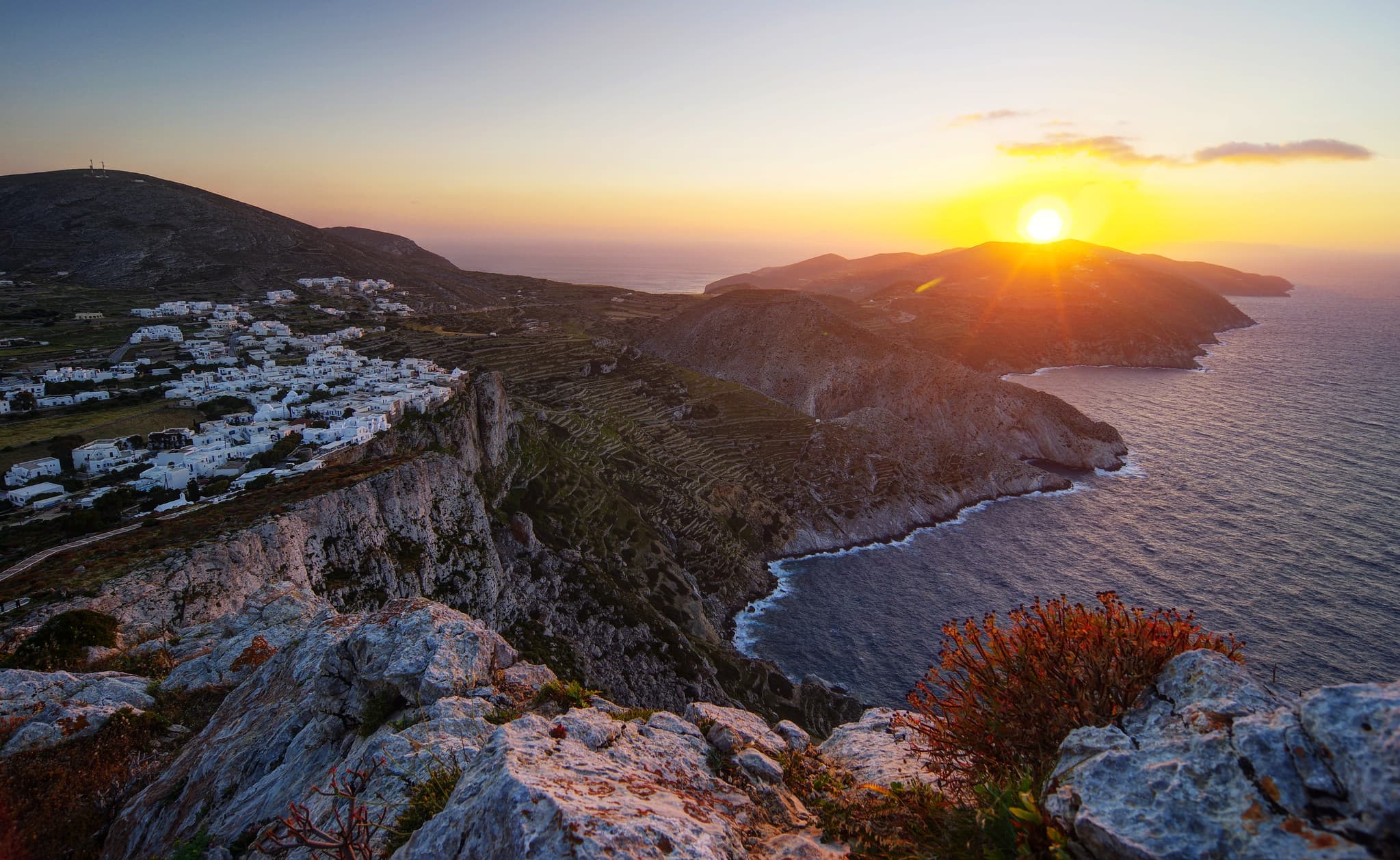 Conosciuta come l’isola del vino fin dai tempi antichi, Sikinos ha una superficie totale di 42.507 chilometri quadrati e gran parte del suo terreno è coperto da terrazze, un tempo utilizzate per l’agricoltura. Con una piccola popolazione di circa 270 residenti, ci sono solo un paio di villaggi, ma tutti sono deliziosi per le loro caratteristiche classiche delle Cicladi di case bianche e chiese con cupole blu. Sikinos è l’ideale se desideri allontanarti dalla folla, esplorare sentieri segnalati, scoprire spiagge incontaminate e vivere al meglio l’autentica ospitalità dell’isola.