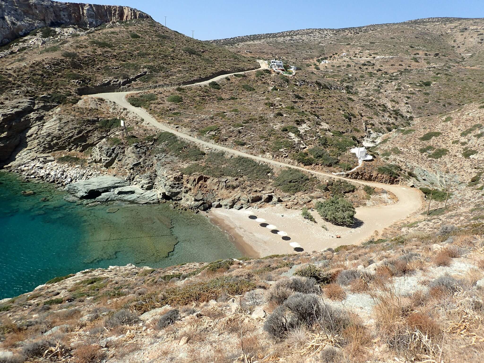 La maggior parte delle spiagge di Sikinos sono molto piccole e fuori dai sentieri battuti, con solo la spiaggia del porto che offre servizi come lettini e ombrelloni. È possibile raggiungere le altre spiagge in autobus oa piedi seguendo i percorsi pedonali.