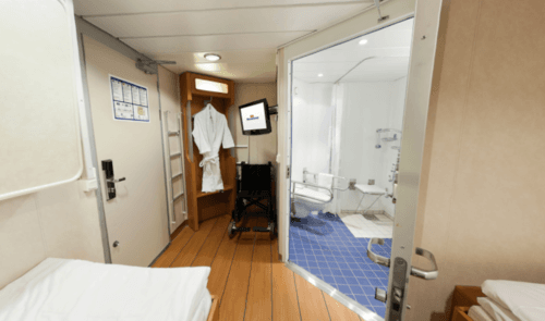 これらのキャビンは、広めのドアと適応設備を備えて設計されています。