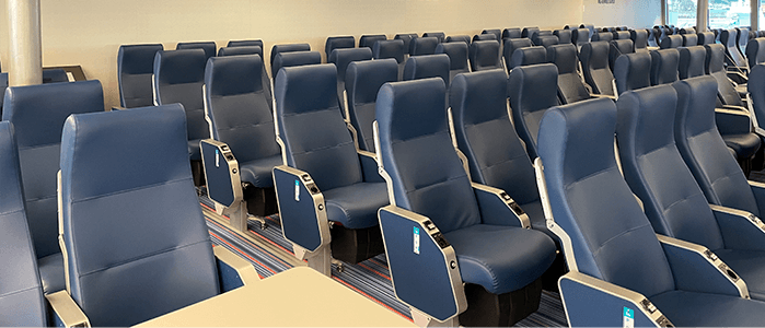 Du kan velge et spesifikt sete på forhånd, med alternativer tilgjengelig i forskjellige klasser og seksjoner ombord på fergen.