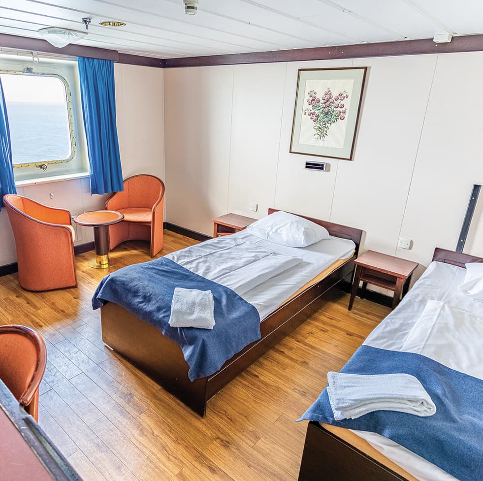 Kabinat janë një zgjedhje e shkëlqyer për pasagjerët që udhëtojnë në grupe, me fëmijë të vegjël, kafshë shtëpiake ose për këdo që preferon pak më shumë privatësi. Shfleto kabinat në bord të Finntrader këtu.