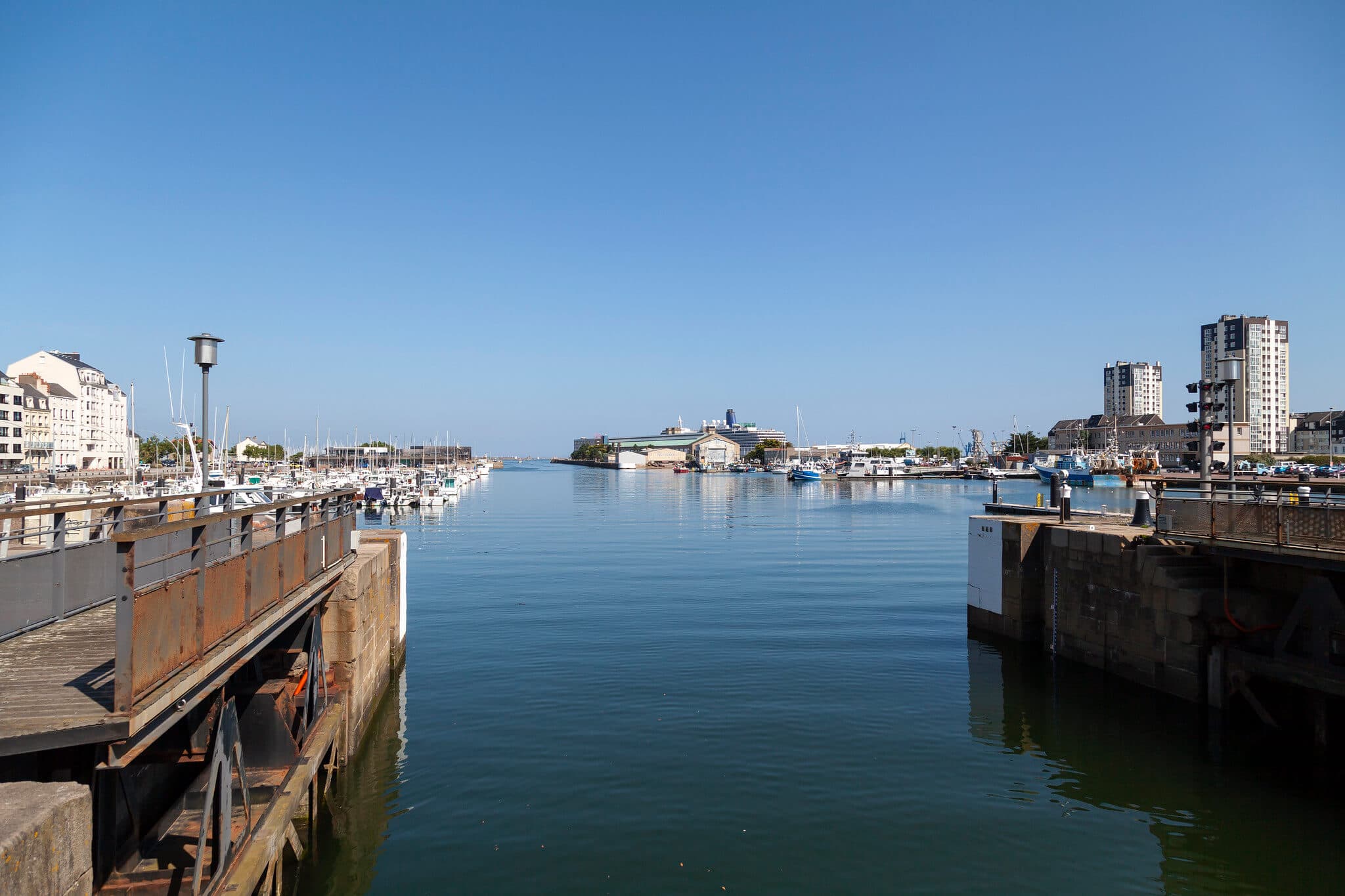 Me një sipërfaqe prej 1500 hektarësh, Porti i Cherbourg është porti i dytë artificial më i madh në botë. Përfunduar në 1853, porti mban shumë vlerësime. Është një bazë detare, si dhe një marinë, dhe kujdeset për anije mallrash, linja lundrimi dhe tragete Ro/Ro çdo ditë. Terminali i lundrimit përbëhet nga dy doke, një dyqan suveniresh dhe ofron një shërbim transporti për në qendrën e qytetit. Terminali i trageteve në portin Cherbourg ka WiFi falas, një restorant, parkim falas të makinave dhe një zyrë turistike që funksionon gjatë sezonit të pikut të festave. Mbajtësit e biletave të tragetit për në Cherbourg do të gjejnë taksi dhe agjenci të makinave me qira afër terminalit pas mbërritjes. Stacioni i trenit është pesë minuta me makinë nga porti, dhe duhen 20 minuta për të ecur deri në qendër të qytetit.