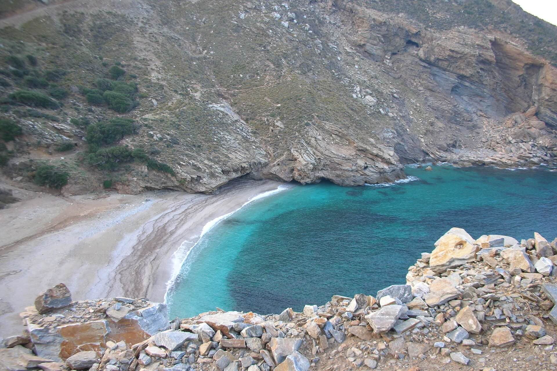 Megjithëse nuk është rreptësisht një plazh, Gryka e Archabolit është një nga mrekullitë kryesore natyrore të Evia – 50 km me makinë nga Karystos. Shkëmbinjtë e lartë bien në një grykë të pacenuar, madhësia e së cilës është vërtet mahnitëse. Bëni rrugën tuaj përgjatë shtegut, poshtë grykës dhe në vijën bregdetare. Atje do të zbuloni një plazh sekret me rërë të paprekur dhe ujë të përsosur. Nuk duhet humbur.