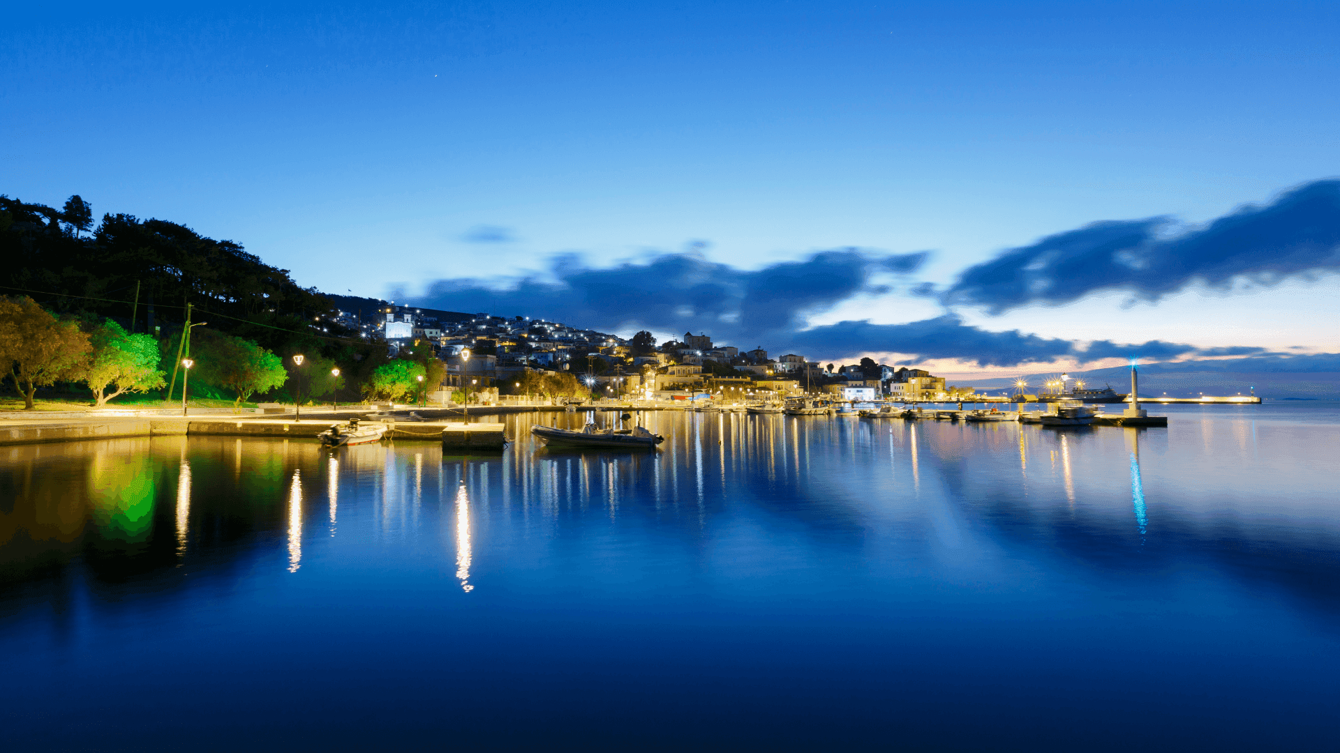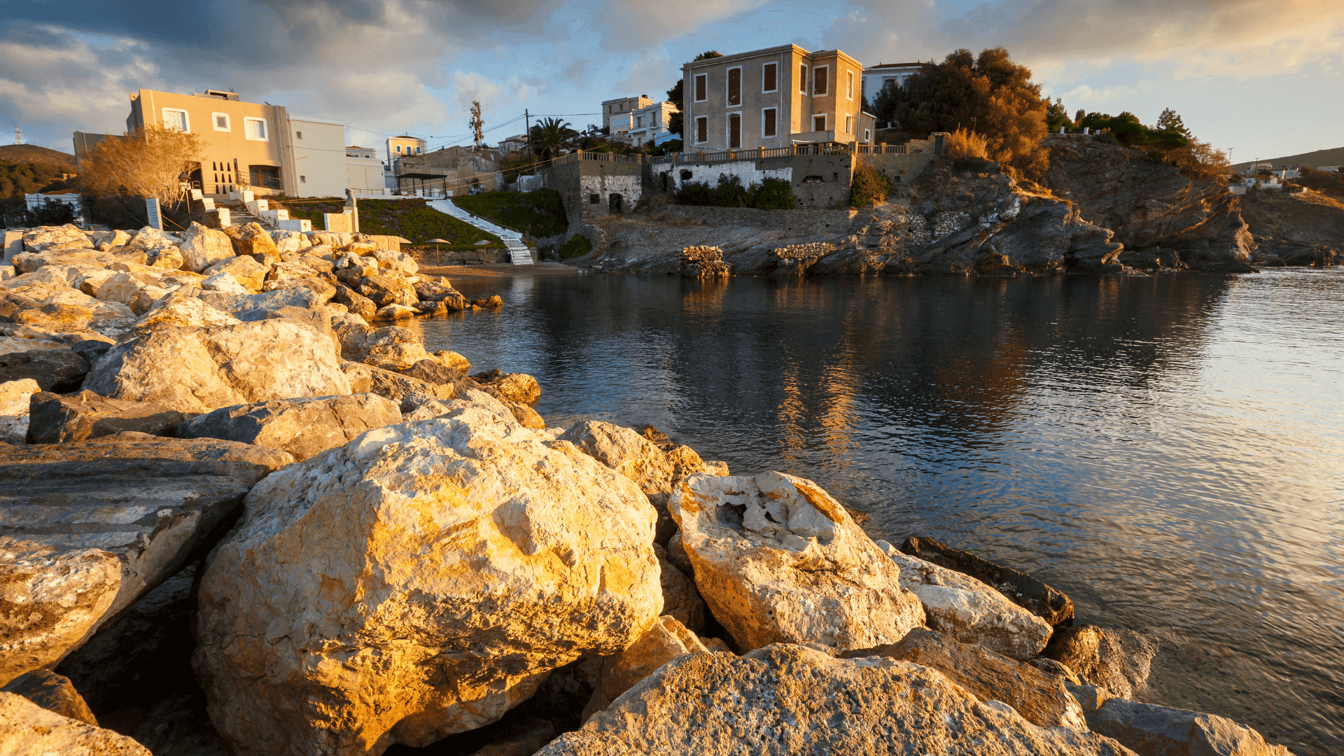 Ky është një plazh popullor për shkak të afërsisë së tij me qytetin kryesor dhe megjithatë ai mbetet plotësisht i paprishur. Uji është i pastër kristal dhe një not freskues sigurisht që do t’ju zgjojë oreksin dhe do t’ju çojë në një nga tavernat e pakta në port që shërbejnë oktapod dhe uzo të sapokapur!