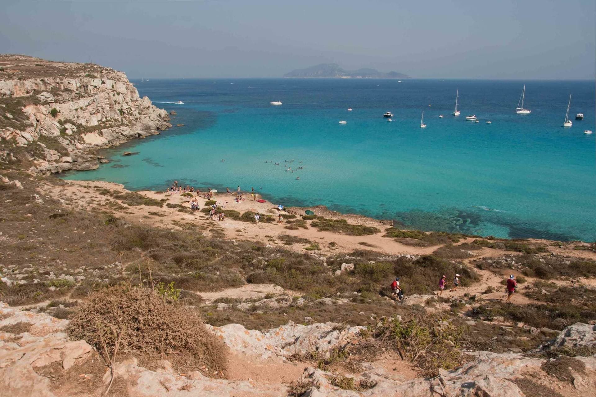 Për një pushim detar jashtë dhe jashtë, turistët fillimisht lundrojnë për në Palermo nga Tunizi , Napoli , Genova , Salerno , Lipari ose disa vende të tjera. Nga Palermo, ata mund të udhëtojnë në Trapani në tokë dhe më pas të përdorin biletat e tyre të tragetit për në Favignana . Pasi në Trapani, ka fluturime të planifikuara dhe tragete më të ngadalta për në ishull. Udhëtimi zgjat nga 45 minuta në më shumë se katër orë nëse trageti ndalon diku tjetër gjatë rrugës. Nëse tashmë jeni duke udhëtuar në arkipelagun Egadian, biletat e trageteve për në Favignana nga Marettimo dhe Levanzo janë në dispozicion në shumicën e ditëve. Shikoni faqen e internetit të Ferryscanner për të gjitha itineraret e disponueshme. Për të arritur në Favignana, udhëtimi me varkë është i pashmangshëm. Sidoqoftë, kur fluturoni brenda, zgjedhjet më të mira janë ose aeroporti Falcone-Borsellino në Palermo ose aeroporti Vincenzo Florio në Trapani. Të dy aeroportet kanë fluturime të shumta me kosto të ulët që vijnë nga e gjithë Evropa. Nëse zbarkoni në Palermo, udhëtarët duhet të marrin një taksi ose autobus për në Trapani për të kapur tragetin.