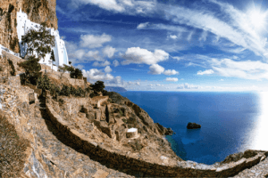 Panagia Hozoviotissa-festivalen på Amorgos är en av de viktigaste religiösa och kulturella händelserna på ön. Panagia Chozoviotissa, Amorgos skyddshelgon, firas den 21 november, men på sommaren, närmare bestämt i augusti, anordnas en av de största festivalerna till hennes ära. Klostret Panagia Chozoviotissa ligger på en brant klippa, ca 300 meter över havet, och erbjuder en imponerande utsikt över Egeiska havet.