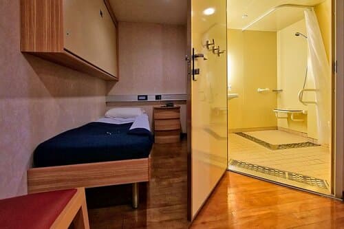 - Standardhytter: Dessa är utrustade med nödvändiga bekvämligheter som sängar, garderob, skrivbord och eget badrum med dusch. Standardhytterna är idealiska för resenärer som vill ha enkel komfort och full funktionalitet.