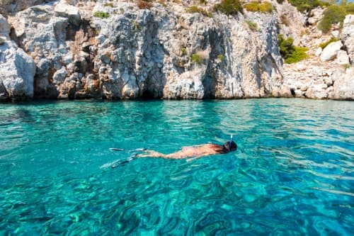 Havskajakturer är det bästa sättet att utforska öns kustlinje på nära håll. Go Kayak Greece erbjuder en rad olika turer, från halvdagsturer och solnedgångsturer till övernattningsäventyr, där man sover ute i det fria.