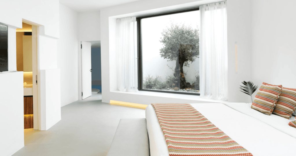 En helt ny plats i Santorini, Nous går utöver “5-stjärnigt” och “lyx”. Detta hotell erbjuder en tillflyktsort från liv och rörelse på platser som Fira, och gästerna kan koppla av med yoga och en meditativ eldstad. Här finns också privata pooler, jacuzzis och lummiga trädgårdar. Nous ägs av Yes Hotels Group och har flera rumstyper, bland annat en bungalow med en 18 kvm stor privat pool och ett 250 kvm stort utomhusområde. Det är ren njutning och passar både par och familjer.