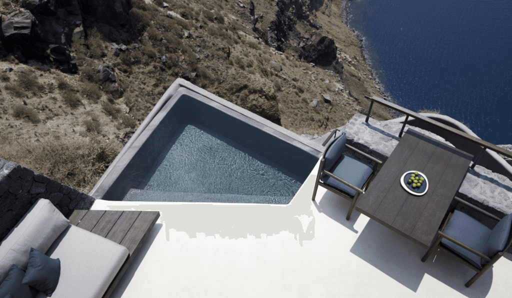 Ännu ett gömställe i en caldera, Vora är ett klipphotell som endast är för vuxna. Det ligger långt från folkmassorna, vilket innebär att du kan slippa bullret – även om du bara är 25 minuter från Fira. Hotellet är uthugget ur en klippa och har en minimalistisk design i sina tre villor, som är de enda rumsalternativen på hotellet. De heter Omikron, Ro och Alpha, är alla likadana och har fullt utrustade kök och bubbelpooler med infinitypool. Med bara tre rum kan du förvänta dig förstklassig service: personalen fungerar även som concierge och kan ordna allt från transfer till restaurangbokningar.