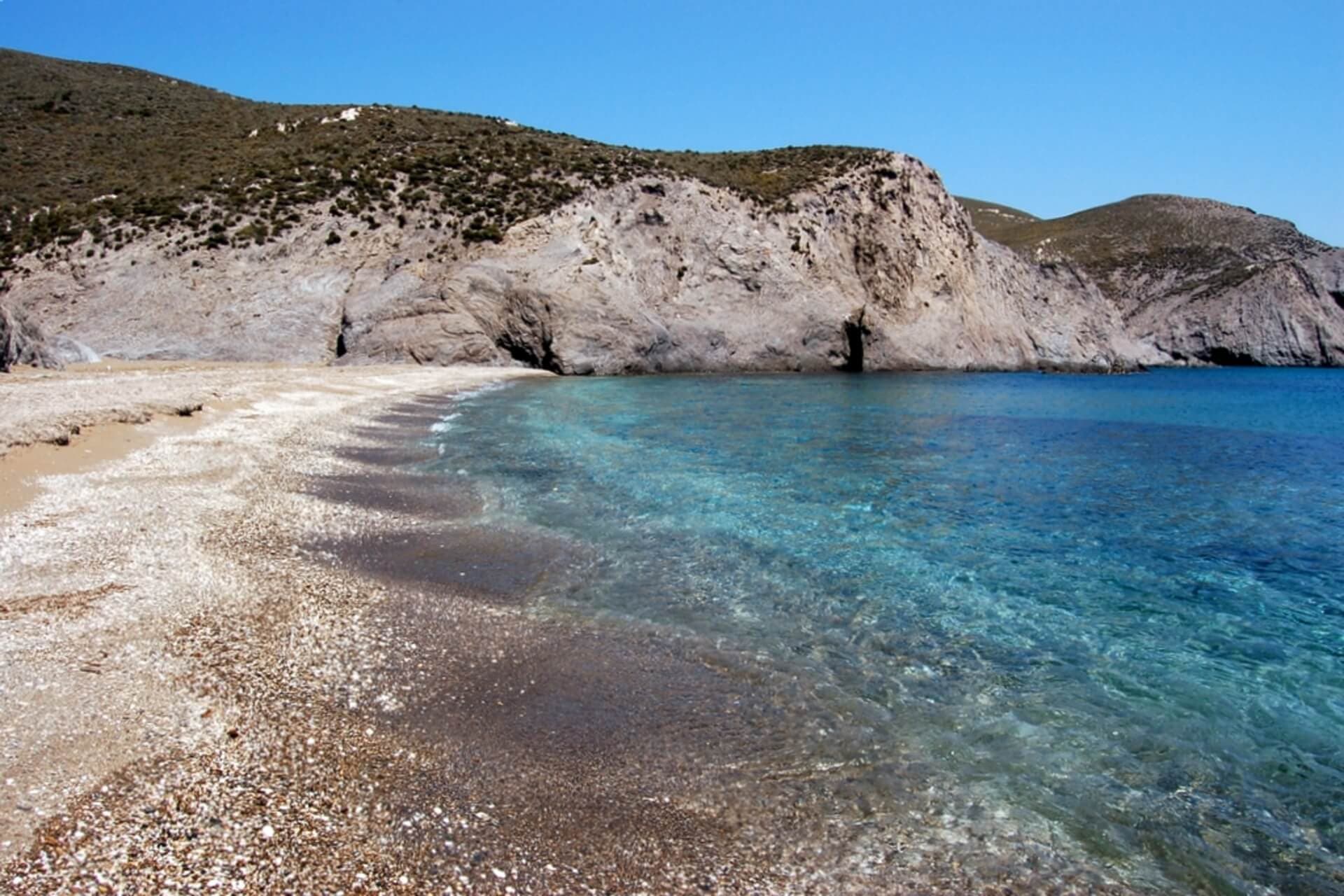 Den här stranden anses av många vara den bästa på ön på grund av dess mjuka sand och ganska grunda vatten. Den ligger på södra sidan av Psara och nås lätt till fots från huvudorten, endast 1 km bort. Det är även tillåtet att campa gratis på stranden, vilket kan tilltala dem som söker friluftslivet.