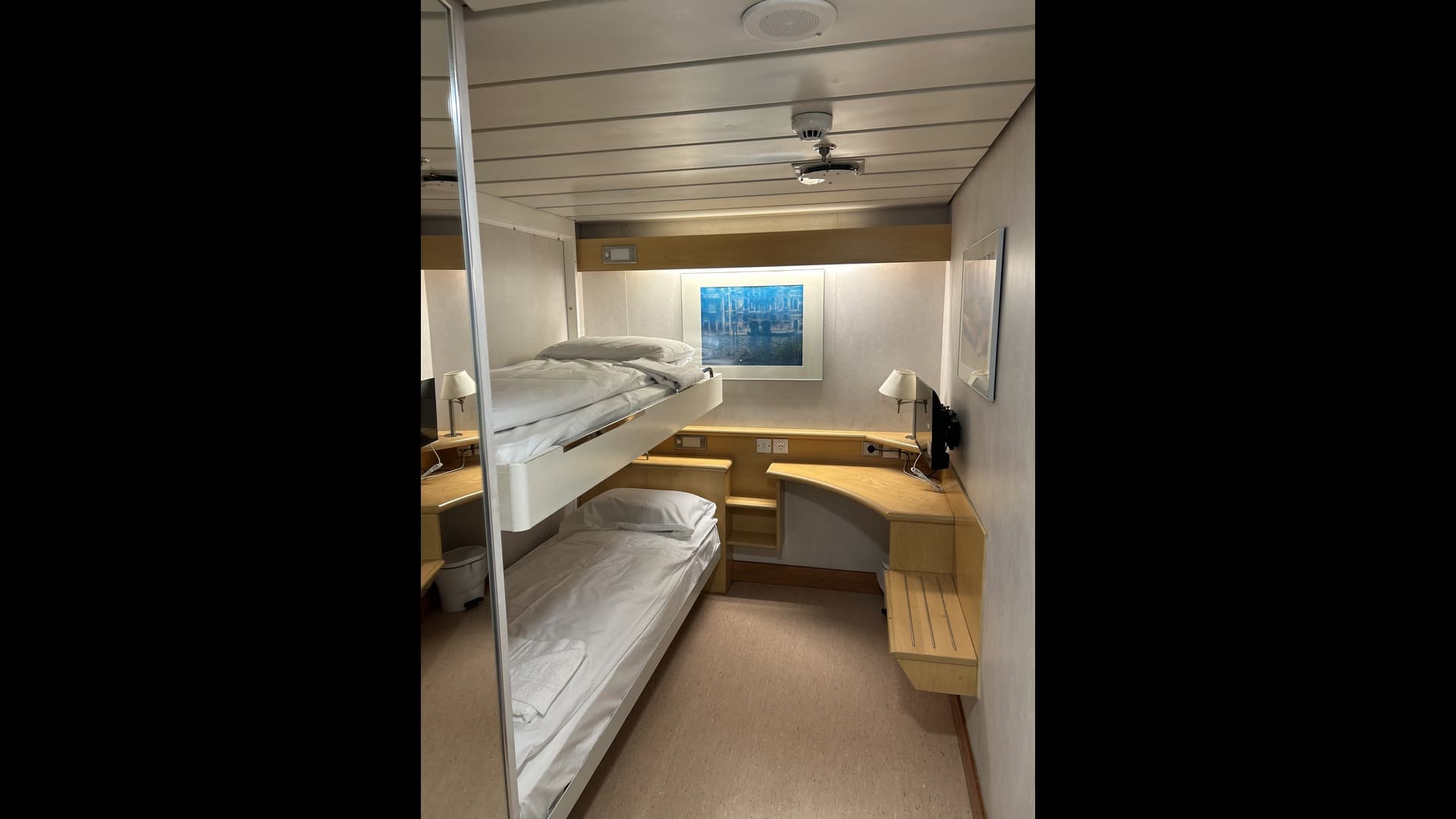 Cabin without window (WC, 淋浴, 电视, Air-condition, Lower beds, Upper beds , Deck 8)