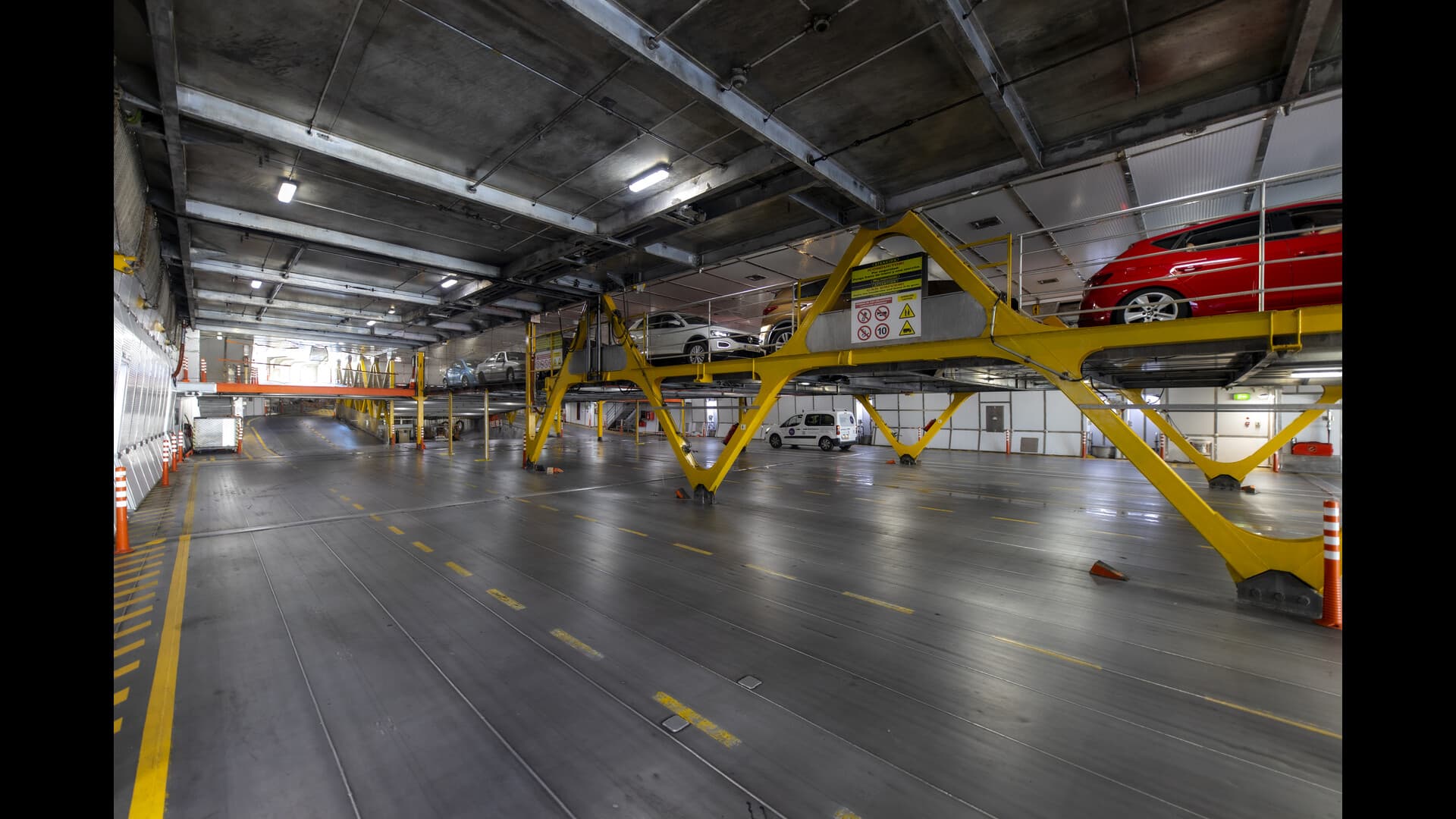 您的车辆和自行车将存放在这里的下层停车甲板。